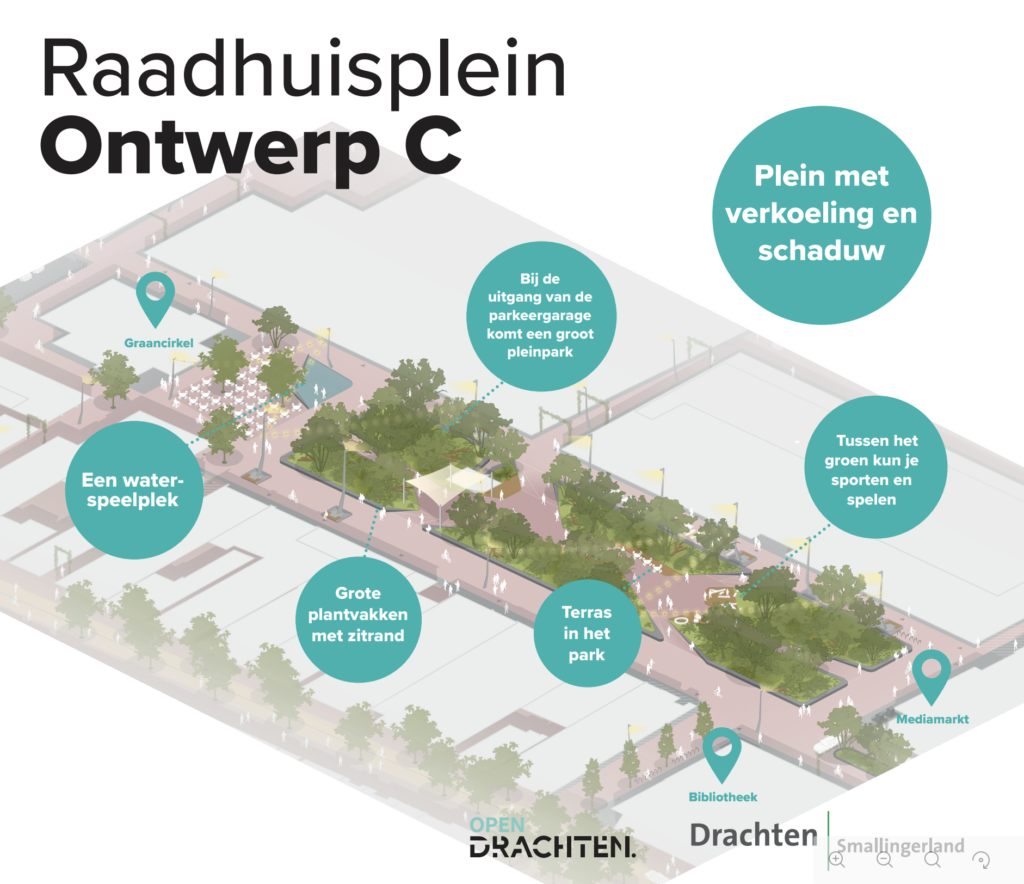 De vernieuwing van het Raadhuisplein is onderdeel van de aanpak van het centrum van Drachten. Doel is dat het centrum nog aantrekkelijker wordt voor bezoekers, ondernemers en bewoners. Het Raadhuisplein speelt hierin een sleutelrol. Op 28 oktober jl. stemde de gemeenteraad in met de aanpak voor de publieksverkiezing Raadhuisplein. Eerder, op 1 oktober 2024, stemde zij in met het ontwerpproces en het voorbereidingskrediet.
