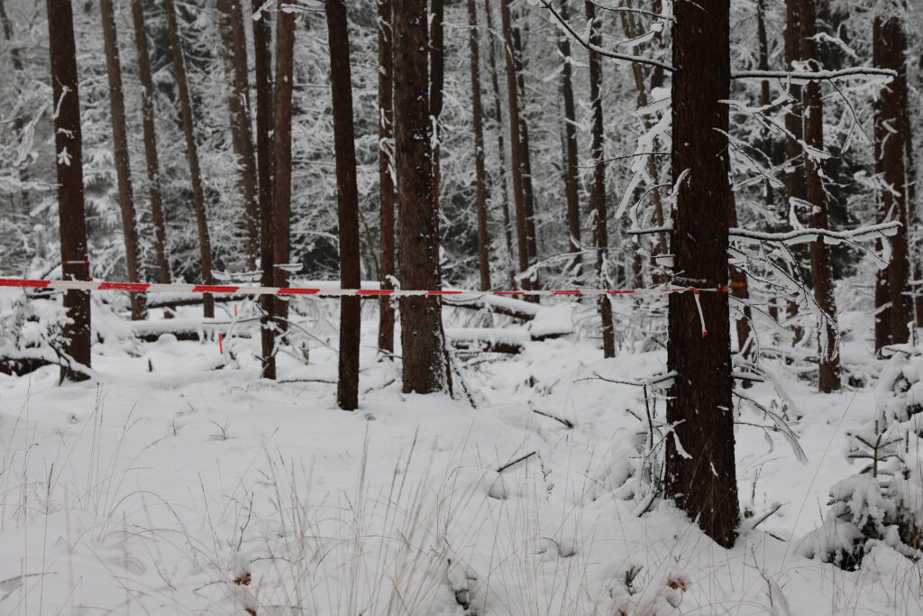 BEETSTERZWAAG – Op de mountainbikeroute in het bos bij Beetsterzwaag zijn op meerdere plekken doorzichtige tape tussen bomen gespannen.