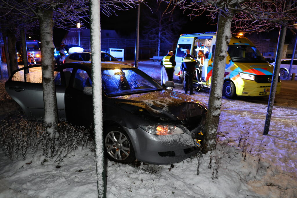 De bestuurder van de auto is door het ambulance personeel gecontroleerd. Vervoer naar het ziekenhuis was niet nodig.